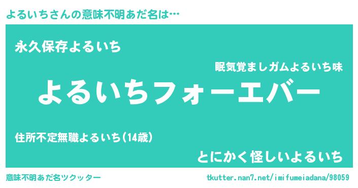 | ヒーロー風カッコイイあだ名 | 『ウルトラよるいちマン』『ネオヨルイチ』 |