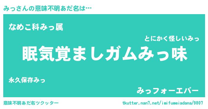 | ヒーロー風カッコイイあだ名 | 『慈愛の使者みっ』『ウルトラみっマン』 |