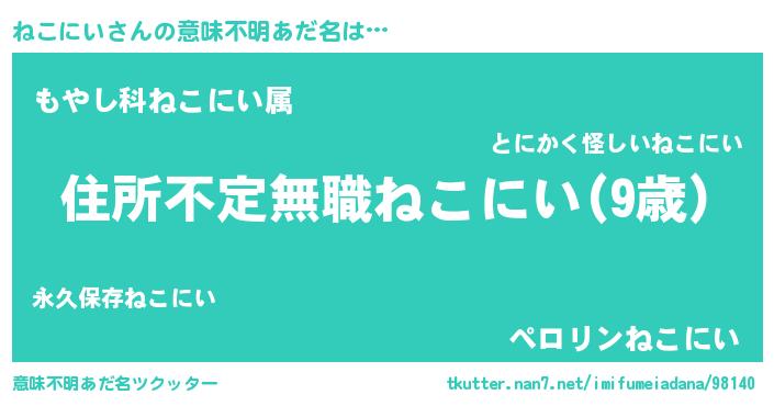 | ヒーロー風カッコイイあだ名 | 『仮面ネコダー』『スーパーネコニイ』 |