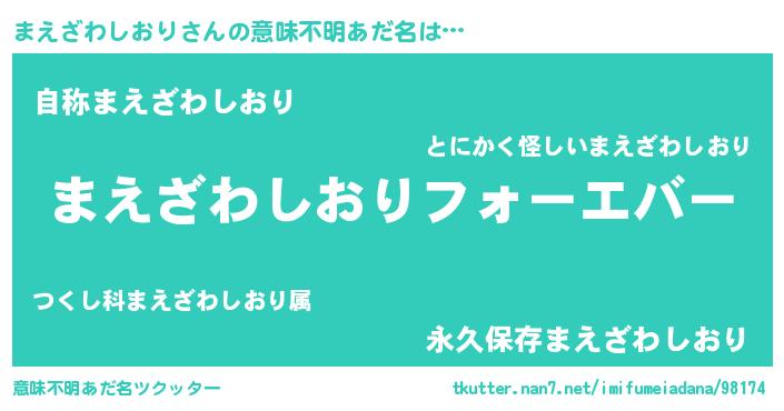 | 肩書あだ名 | 『まえざわしおり総理大臣』 |