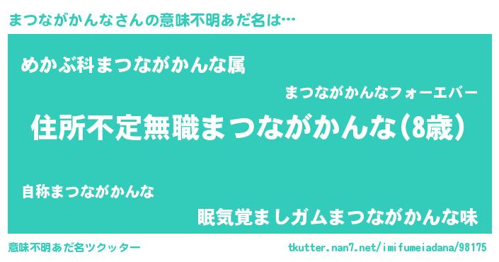 | 女子向けラノベタイトル風あだ名 | 『乙女ゲームの破滅フラグしかない悪役まつながかんなに転生してしまった…』 |