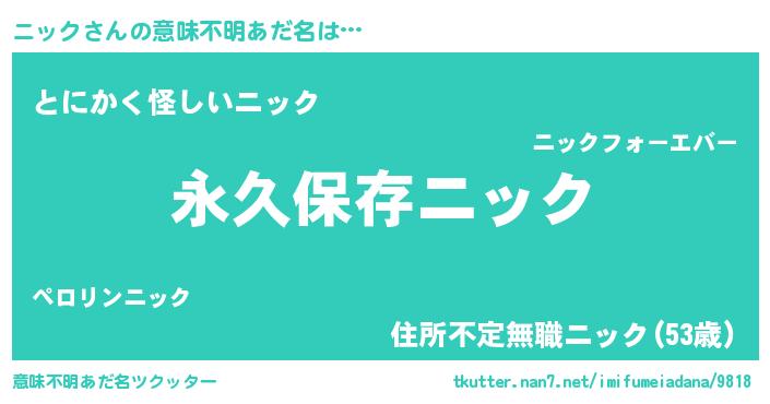 | ポケモン風あだ名 | 『ゼニニッ』『ヒニック』『ニーッイ』 |