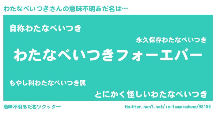 | 欧米人風あだ名 | 『わたなべいつき・ステッグマイヤー』 |