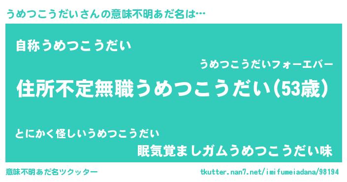 | 恥ずかしいあだ名 | 『ウメツコウダイデラックス』『うめちん』 |