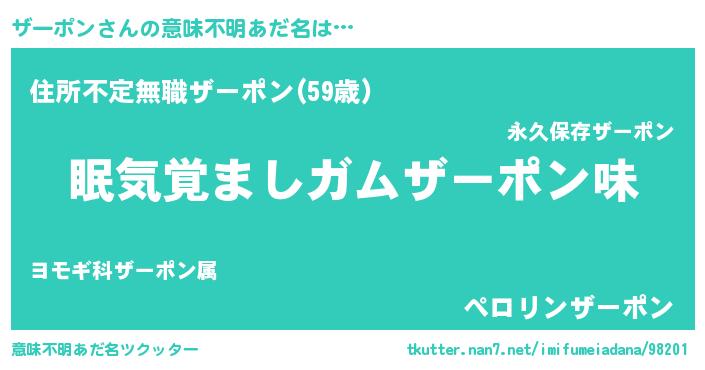 | 男性向けラノベタイトル風あだ名 | 『緋弾のザーポン』『魔弾の王とザーポン』 |