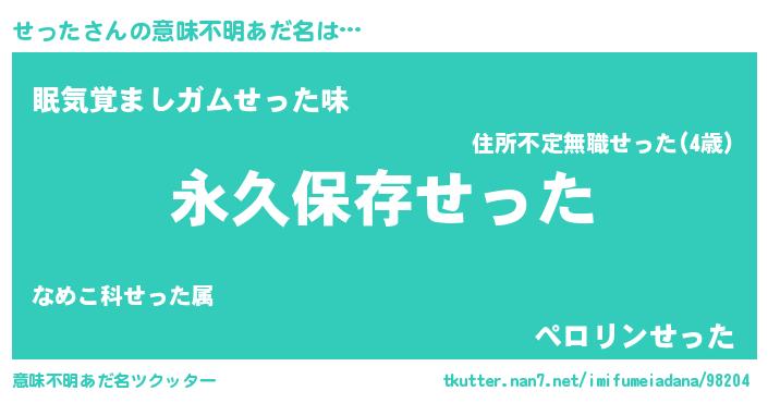 | 男性向けラノベタイトル風あだ名 | 『せったという概念が存在しない退屈な世界 』 |