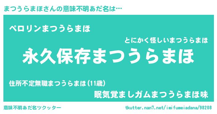 | ヘコむあだ名 | 『まつうらまほ(震え声)』『まつふぇ~』 |