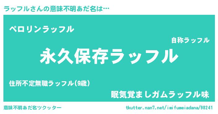 | ヒーロー風カッコイイあだ名 | 『ネオラッフル』『スーパーラッフル』 |