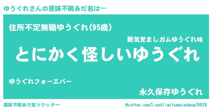 | ポケモン風あだ名 | 『ヒユウグレ』『ユーウイ』 |