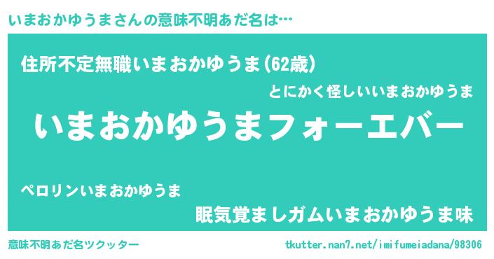 | 男性向けラノベタイトル風あだ名 | 『やはりいまおかゆうまの青春ラブコメはまちがっている 』 |