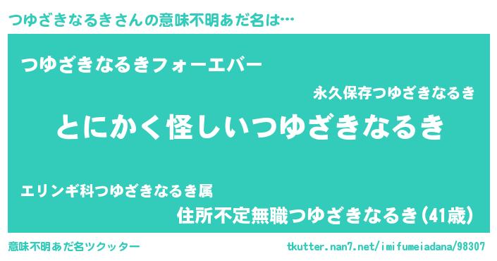 | ポケモン風あだ名 | 『ヒツユザキナルキ』『ツユザダネ』 |