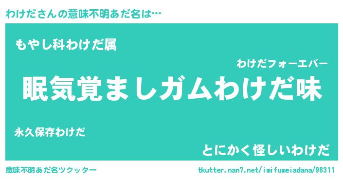 | ヒーロー風カッコイイあだ名 | 『正義の使者わけだ』『天弓騎士ワケ』 |