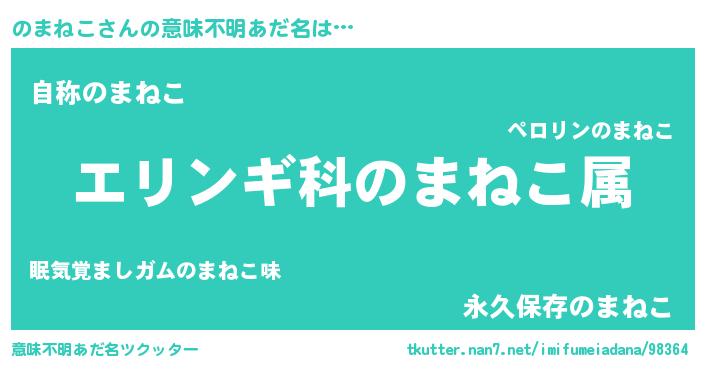 | 料理風あだ名 | 『のまねこごはん』『のまねこのトマト煮』 |