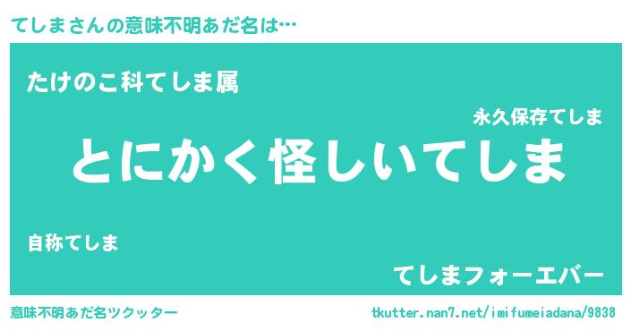| 男性向けラノベタイトル風あだ名 | 『てしまに滅ぼされるだけの簡単なお仕事です』 |