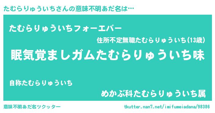 | ヒーロー風カッコイイあだ名 | 『正義の使者たむらりゅういち』 |