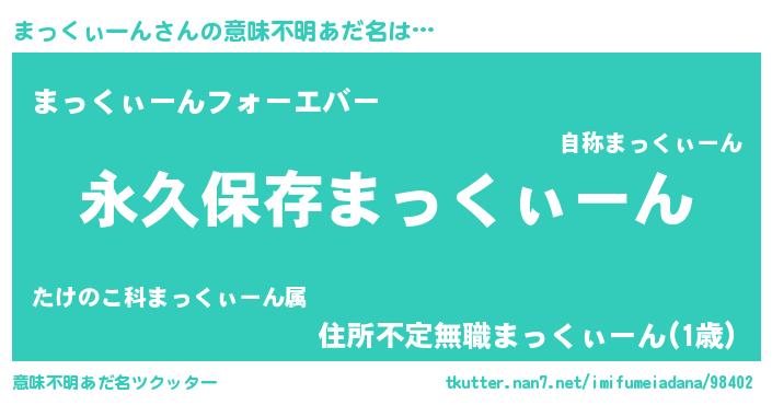 | 男性向けラノベタイトル風あだ名 | 『まっくぃーんという概念が存在しない退屈な世界 』 |
