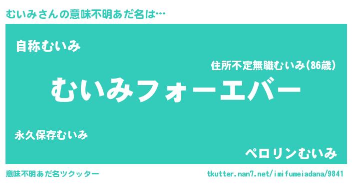| 女子向けラノベタイトル風あだ名 | 『むいみの雑貨屋さん』『闇のむいみ』 |