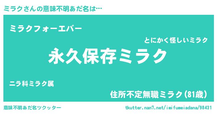 | ファンタジー風あだ名 | 『ミラディッシュ』『エターナルミラクー』 |