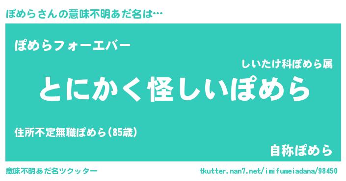 | 胡散臭い通販商品みたいなあだ名 | 『伝統あるサプリメント…その名も「ぽめら」』 |