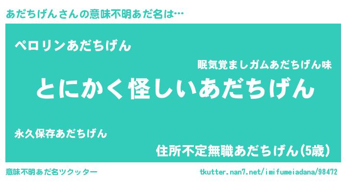 | ポケモン風あだ名 | 『メロアッダ』『ヒアダチゲン』 |