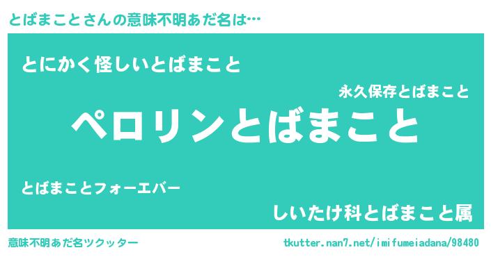 | ポケモン風あだ名 | 『トバチュウ』『ヒトバマコト』 |
