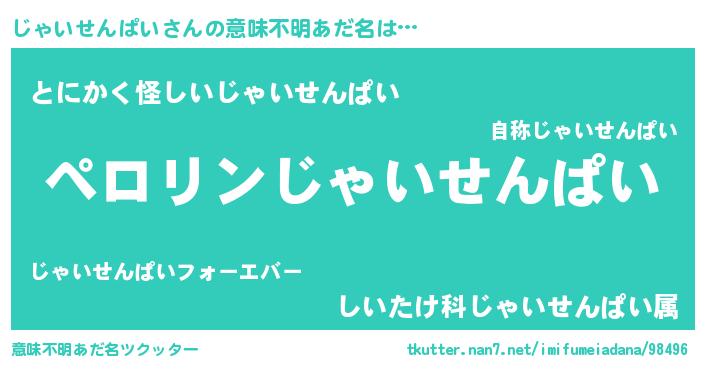 | 胡散臭い通販商品みたいなあだ名 | 『億万長者になれるブレスレット…その名も「じゃいせんぱい」』 |
