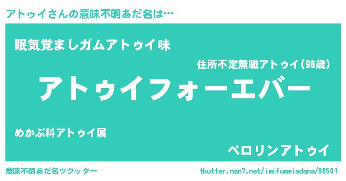 | 欧米人風あだ名 | 『アトゥイクリステル』 |