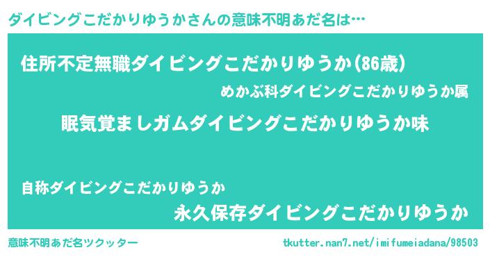 | 伝説のあだ名 | 『救世主となる技術者ダイビングこだかりゆうか』 |