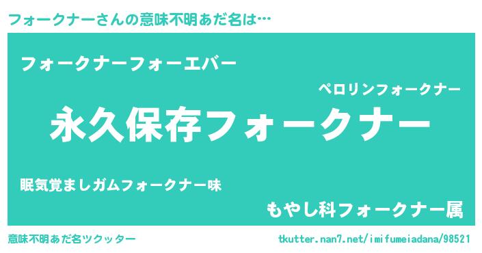 | ヘコむあだ名 | 『フォークナー(小並感)』『なまこ酢』 |