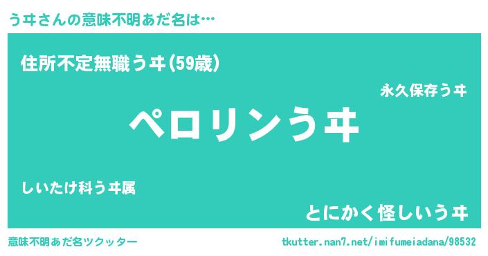 | 自動車の名前っぽいあだ名 | 『プリウヰ』『ウウディ』『デミウ』 |