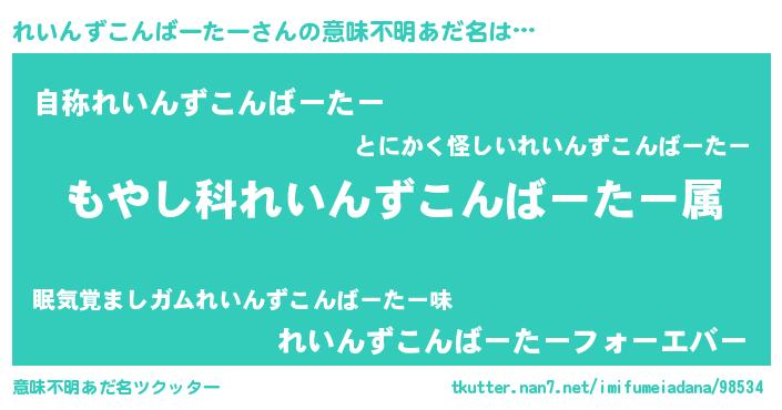 | 男性向けラノベタイトル風あだ名 | 『転生したられいんずこんばーたーだった件』 |