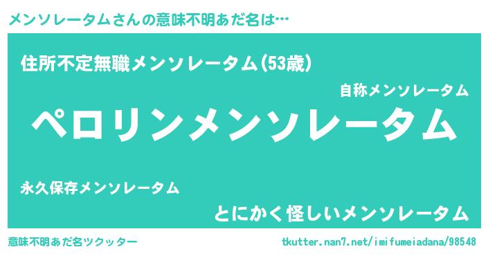 | ヘコむあだ名 | 『メンふぇ~』『メンぷりん』 |