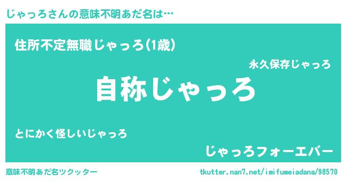 | 男性向けラノベタイトル風あだ名 | 『魔法科高校のじゃっろ』 |