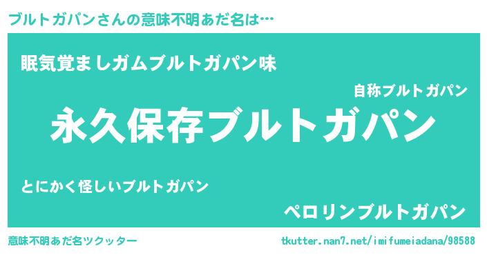 | 男性向けラノベタイトル風あだ名 | 『ブルトガパンという概念が存在しない退屈な世界 』 |