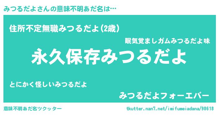 | 伝説のあだ名 | 『聞きしに勝る吟遊詩人みつるだよ』 |