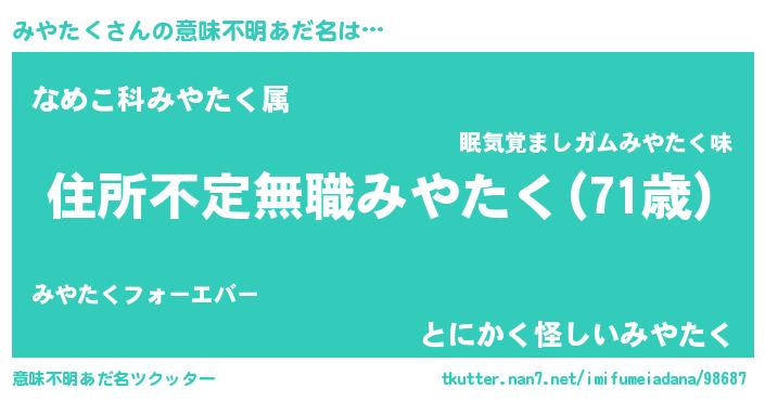 | ヒーロー風カッコイイあだ名 | 『仮面ミヤダー』『銀牙騎士ミヤ』 |