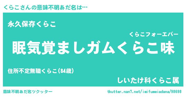 | ヘコむあだ名 | 『くらこ(笑)』『牛乳』『くらにー』 |