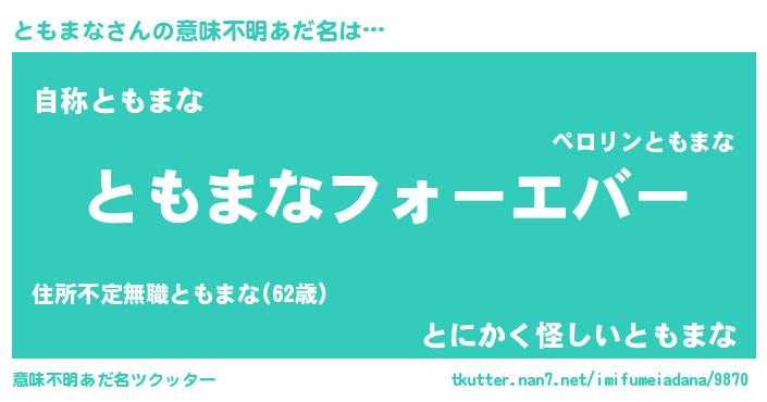 | ヒーロー風カッコイイあだ名 | 『ウルトラともまなマン』『天弓騎士トモ』 |