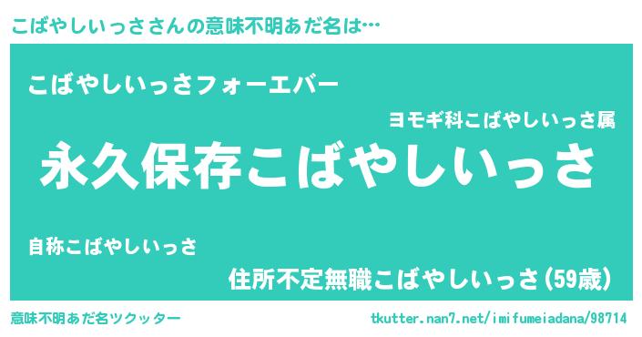 | 胡散臭い通販商品みたいなあだ名 | 『来世でも幸せになれる水素水…その名も「こばやしいっさ」』 |