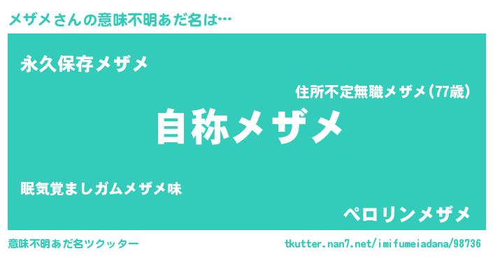 | ファンタジー風あだ名 | 『ゼメザトゥ』『メザディッシュ』 |