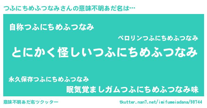 | ポケモン風あだ名 | 『ヒツフニチメフツナミ』『ツフセウス』 |