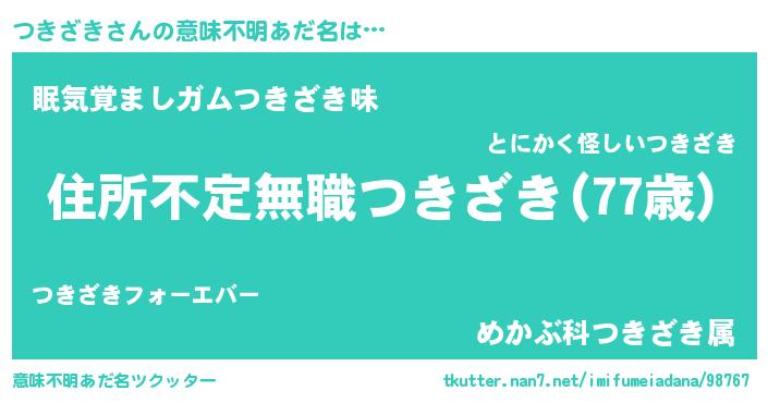 | ヒーロー風カッコイイあだ名 | 『仮面ツキダー』『慈愛の使者つきざき』 |
