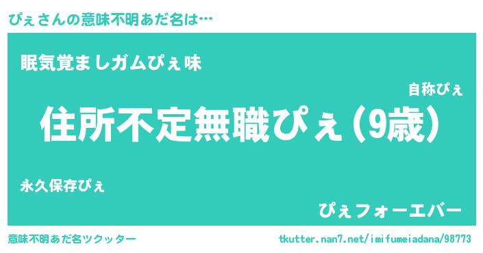 | ヒーロー風カッコイイあだ名 | 『仮面ピェダー』『友情の使者ぴぇ』 |