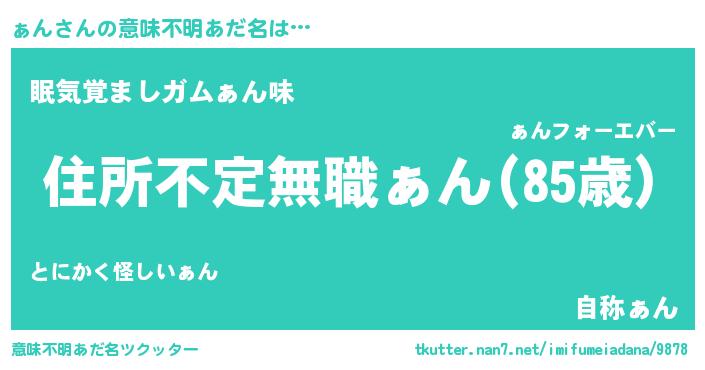 | 肩書あだ名 | 『ぁん機長』『ぁん教官』『ぁん総統』 |
