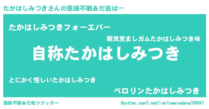 | 肩書あだ名 | 『たかはしみつき総統』 |