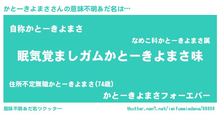 | 肩書あだ名 | 『かとーきよまさマネージャー』 |