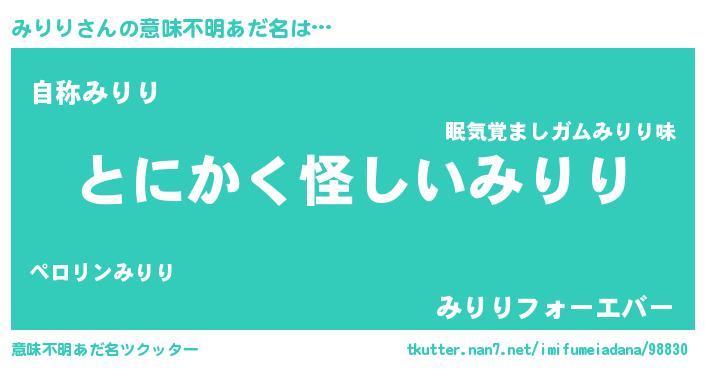 | 胡散臭い通販商品みたいなあだ名 | 『伝統あるサプリメント…その名も「みりり」』 |