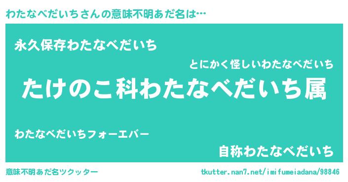 | 男性向けラノベタイトル風あだ名 | 『転生したらわたなべだいちだった件』 |