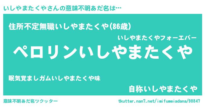 | 胡散臭い通販商品みたいなあだ名 | 『必ず成功する霊験あらたかなお札…その名も「いしやまたくや」』 |