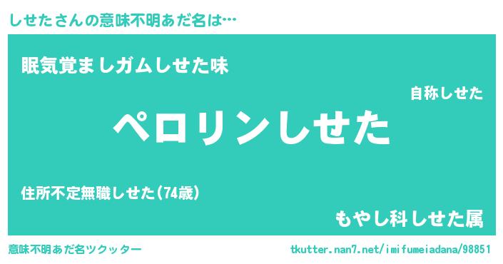 | 男性向けラノベタイトル風あだ名 | 『しせたの憂鬱』『魔法科高校のしせた』 |